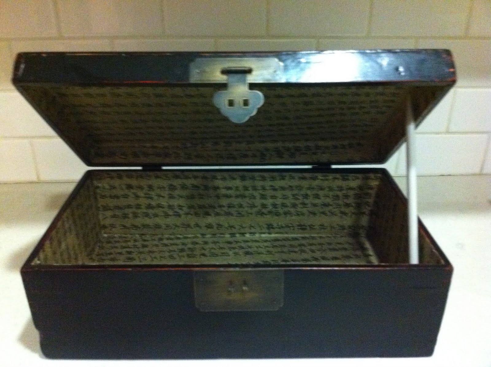 white lacquer box from West Elm, clean and contemporary way to hide your junk